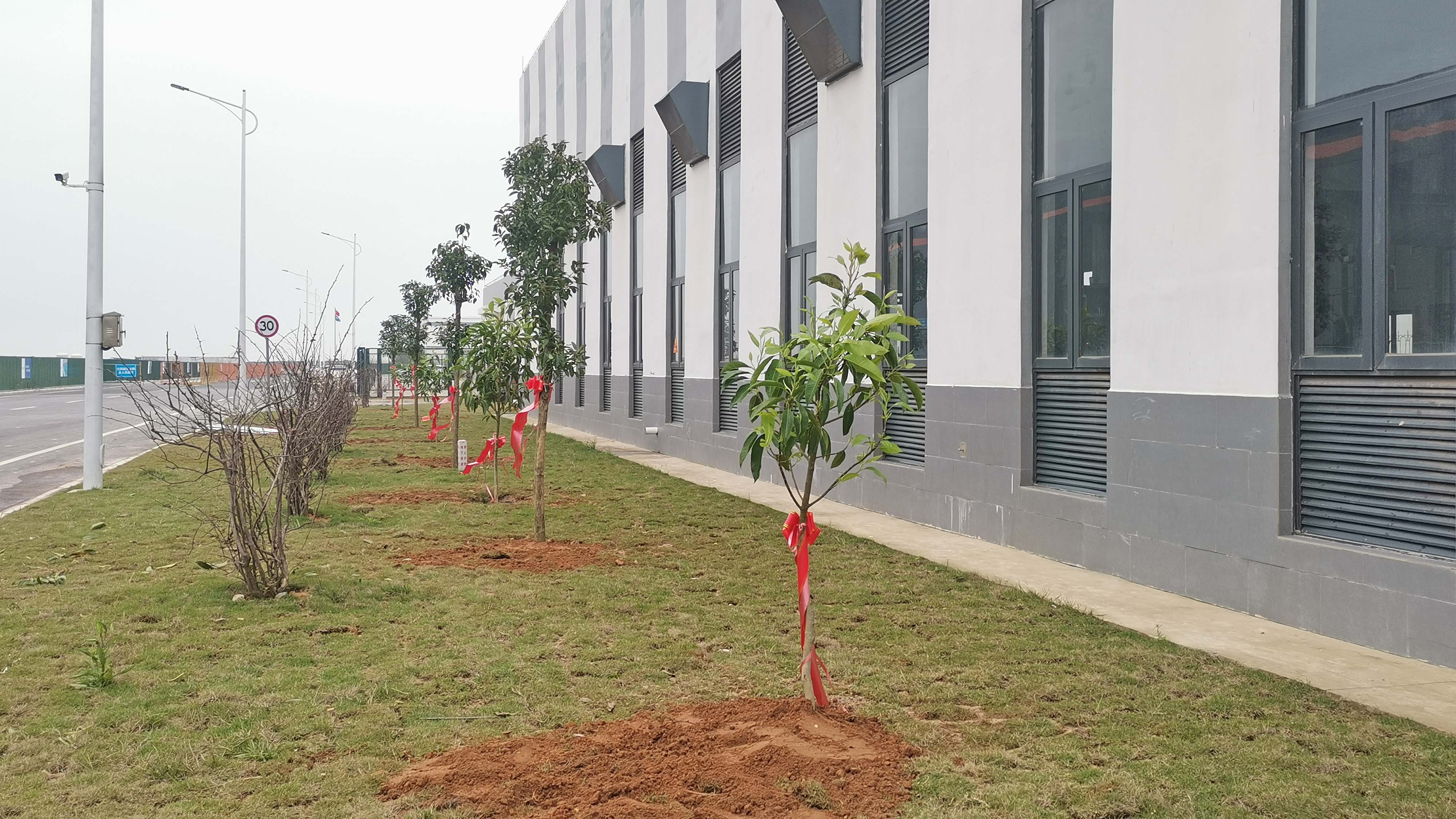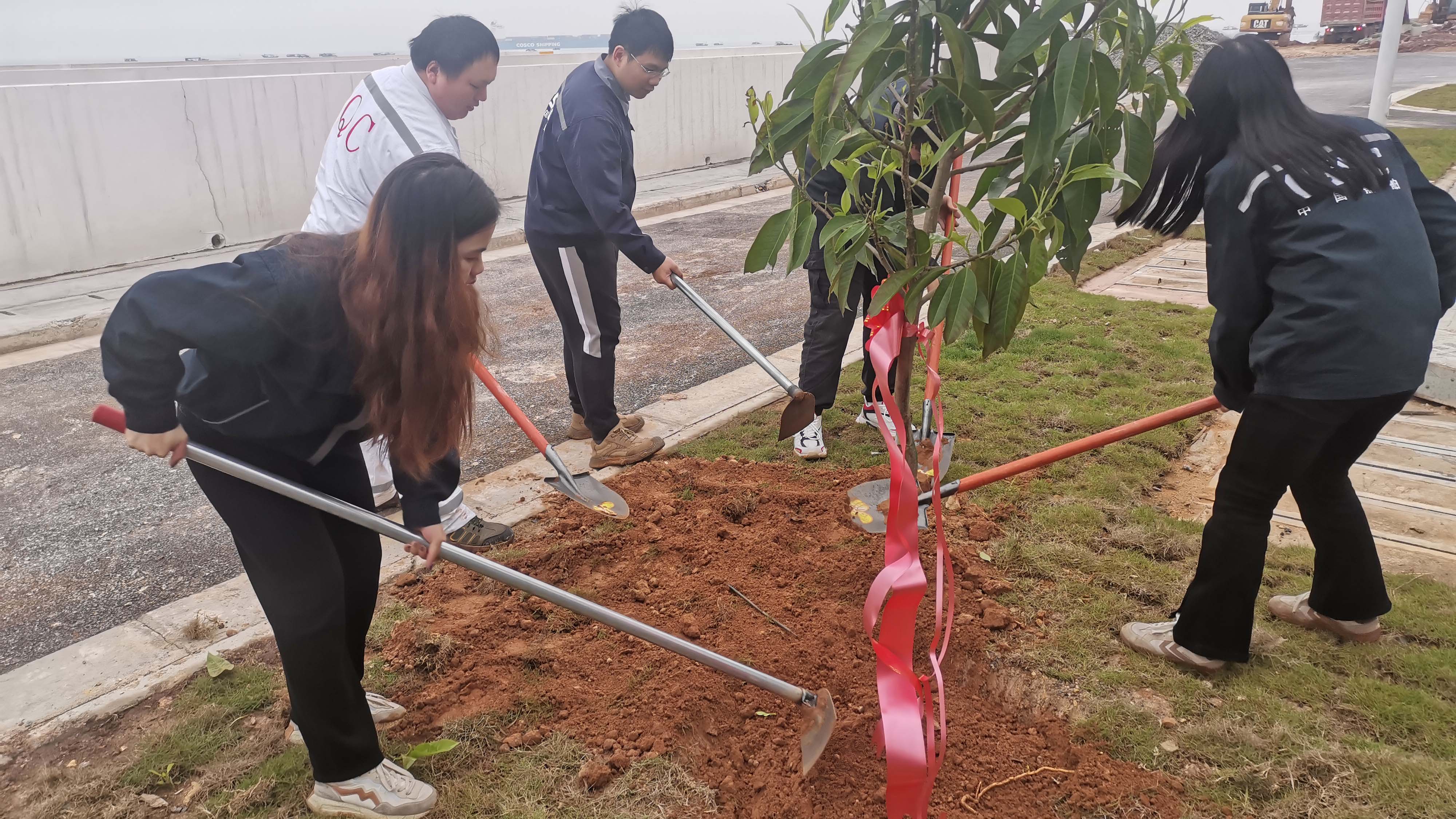 活動現(xiàn)場,大家分工有序,默契配合,有的鏟土、有的扶苗、有的踩實修整,個個干勁十足,呈現(xiàn)出一片熱火朝天的勞動場景。40棵樹苗僅用了半個小時就全部種植完畢,昂首挺立、整齊劃一的屹立在廠區(qū),為春日里的廠區(qū)增添了一抹綠意和盎然生機。